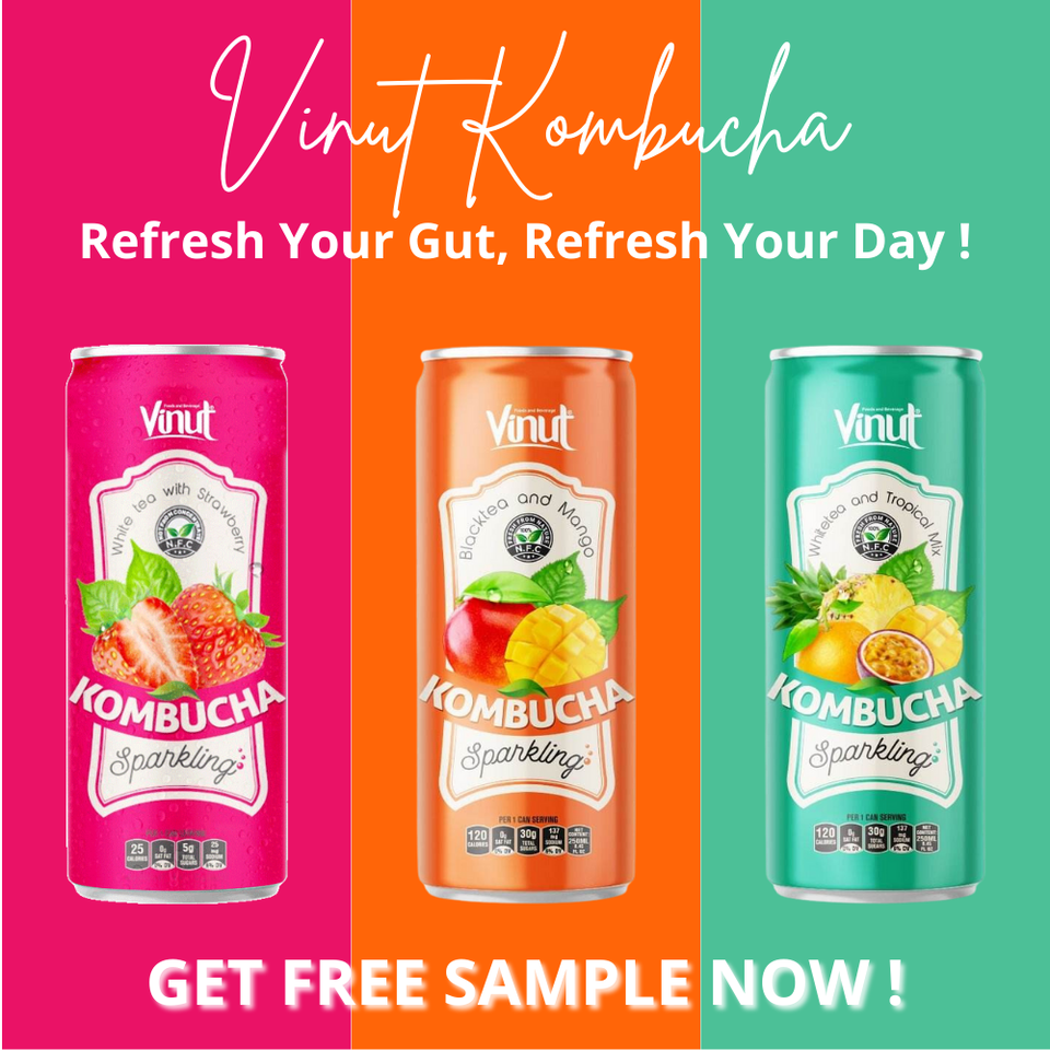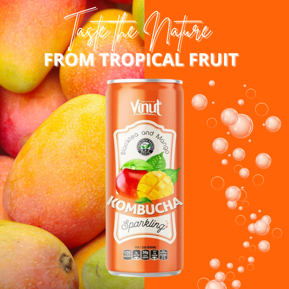 Vietnam Manufactured 250ml Sparkling Kombucha Fresh Black Tea Beverage Health Tea Vinut Brand Can (Tinned) Grapefruit Honey 24