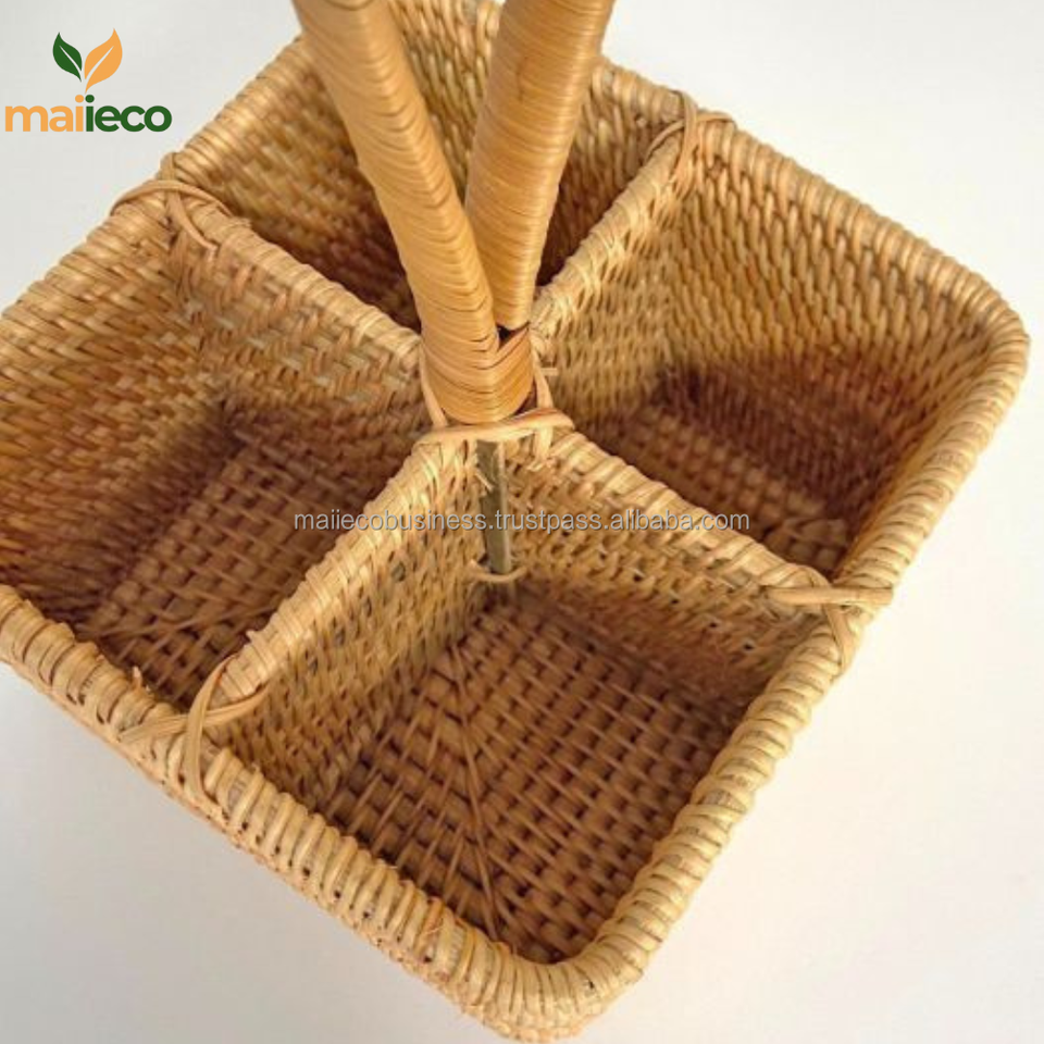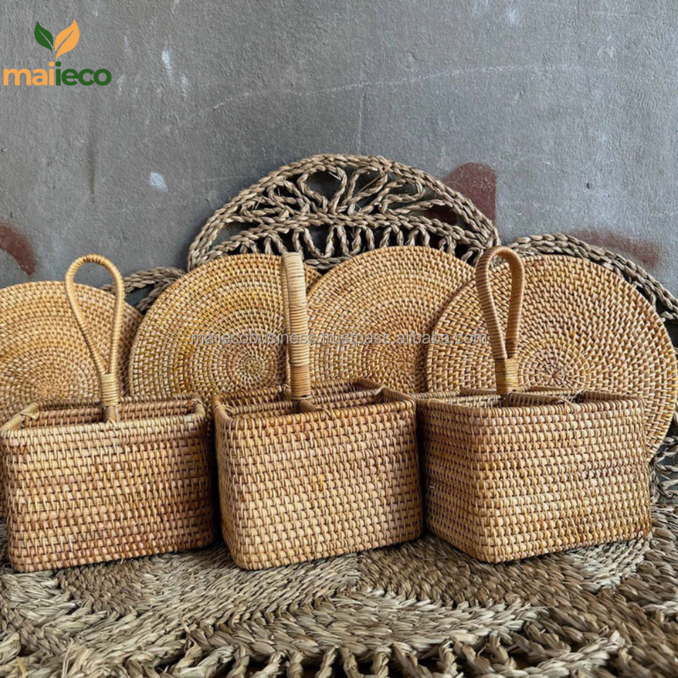 Vietnam Manufactured Eco-friendly Vintage Style Rectangle Cutlery Utensil Caddy Rattan Straw Holder at Reasonable Price
