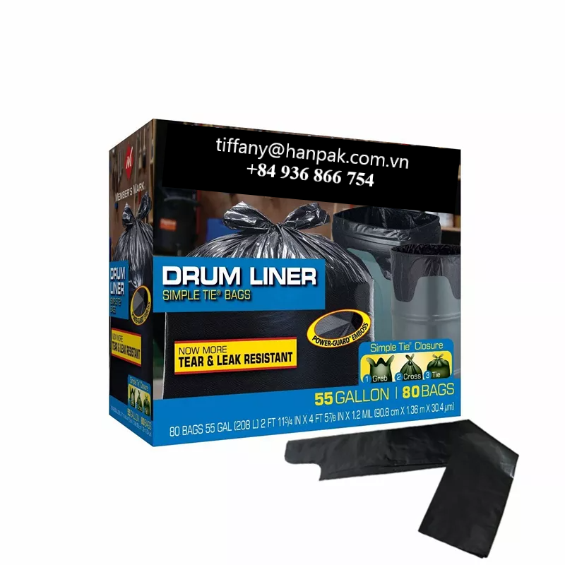 Vietnam Manufacturer 55 Gallon 1 Mil HDPE Heavy Duty Clean up Bag Easy Flap Tie Closure/Top Wave Garbage Bag Storage Made in Vietnam