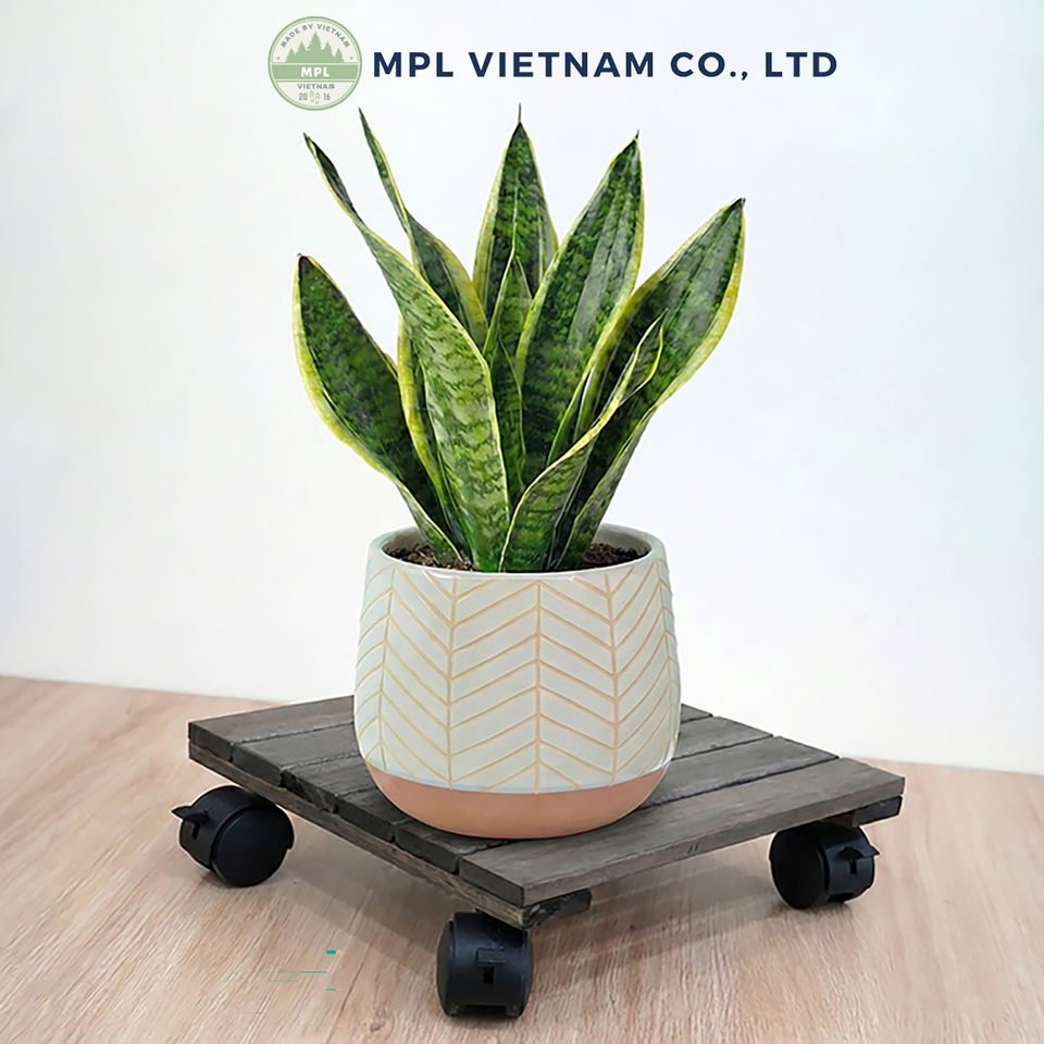 Vietnam Manufacturer Acacia Wood Plant Caddy-Waterproof Outdoor Rolling Flower Pot Stand Base Rack on Wheels for Garden