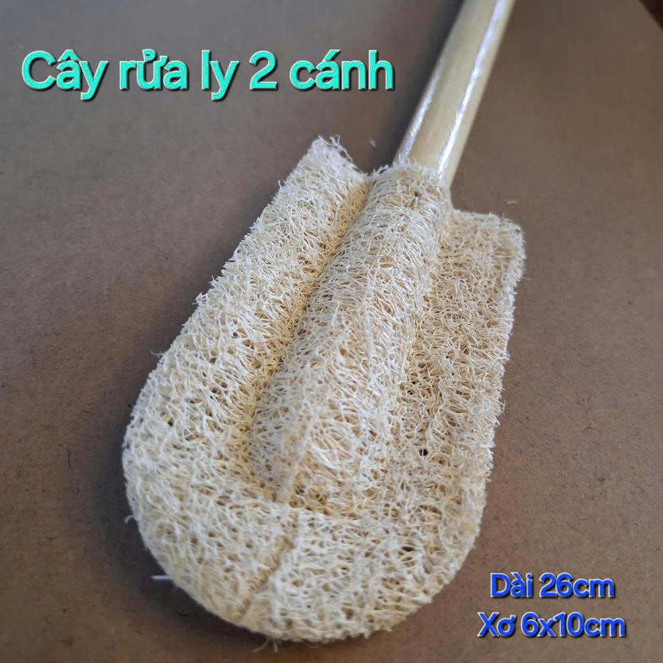 Vietnam Manufacturer Hot Sale KB Eco Life 2-Wing Cup Cleaning Brush Soft Safe Natural Loofah Sponge Non-Scratch Wood Handle