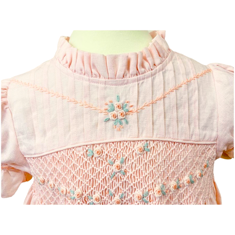 Vietnam Manufacturer's Baby Dresses For Girl Smocked Children Clothing Pink Short Sleeve Flora Princess Dress ODM & OEM