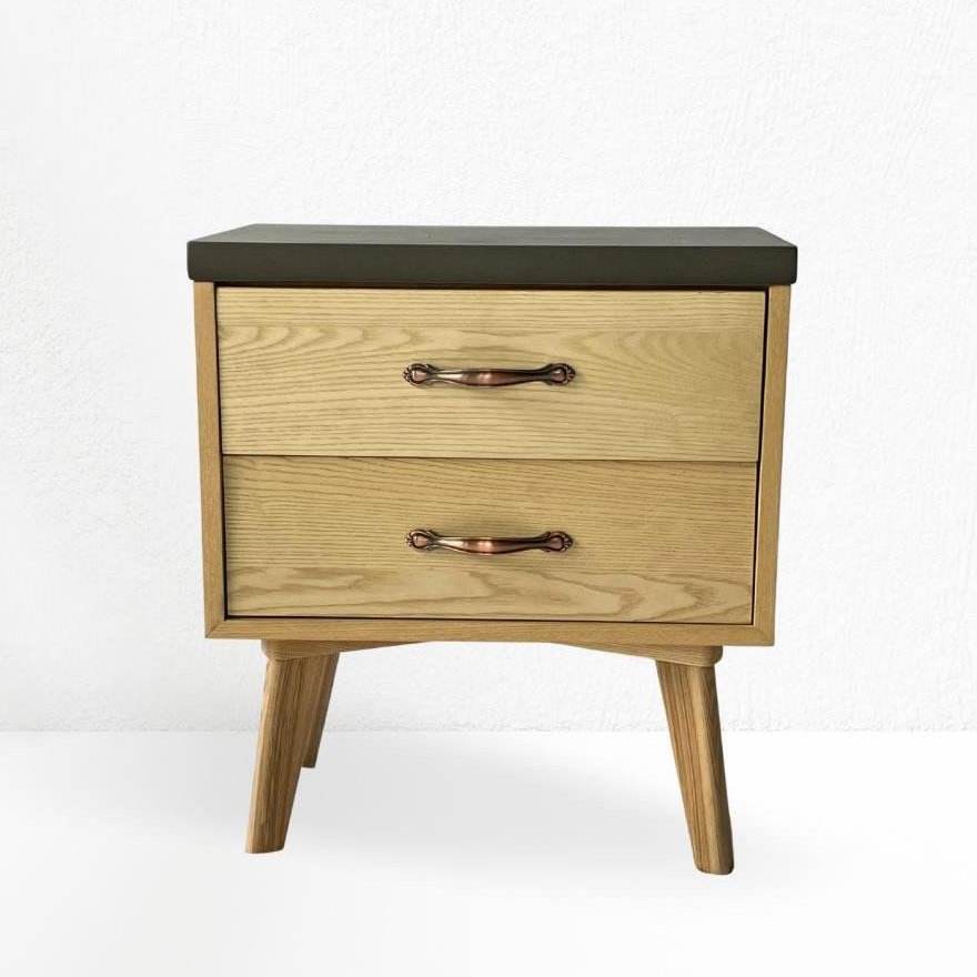 Product name:Concrete Top Solid Wood Bedside Table 2 Drawers Night Stand Cabinet