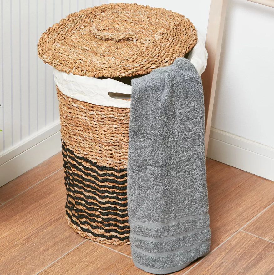 Vietnam Palm Leaf Laundry Hamper, Custom Size Woven Storage Basket with Fabric Lining Handmade Eco-Friendly Household Basket