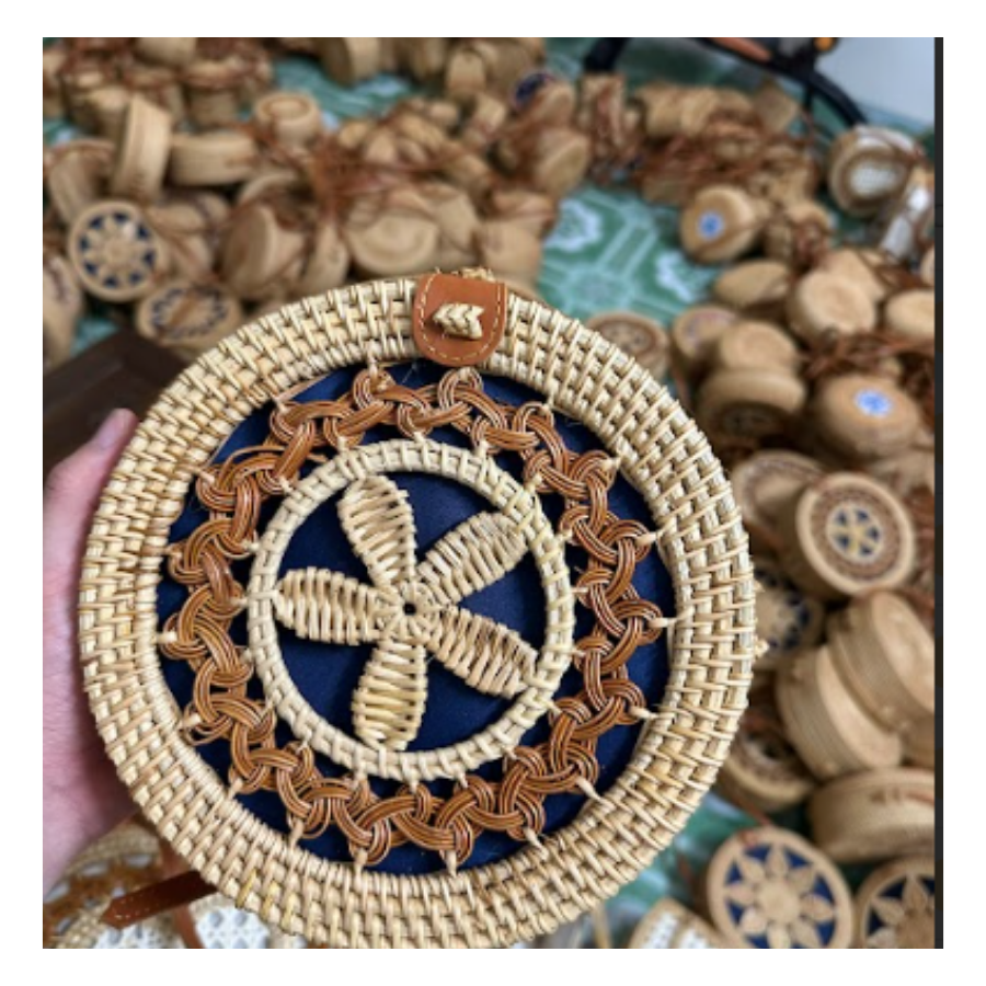 Vietnam Round Straw Bag, Handcrafted Rattan Purse for Export, Womens Beach Tote Bag