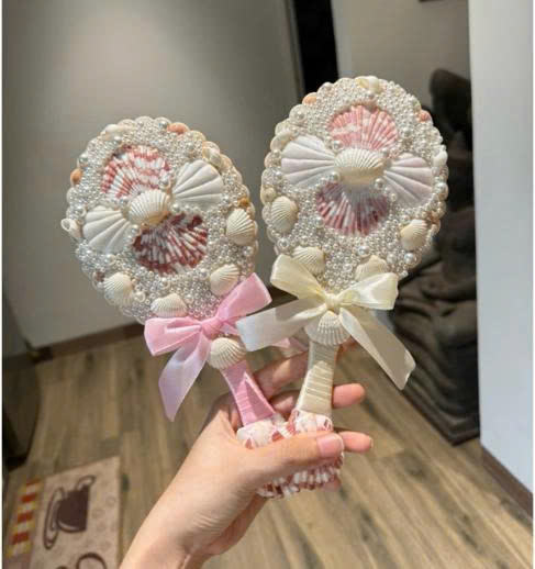 Vietnam Seashell Mirror Decorated With Mixed Natural Shells, Compact Seashell Mirror Ideal For Beauty Touch-Ups And Seaside Gift