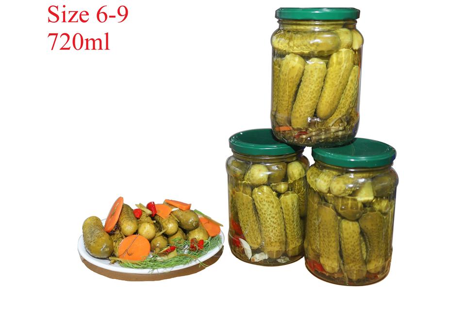 Vietnam Small Size Baby Pickled Cucumber Gherkins 720ml 500ml Salt Preserved Style Canned Drum 100% Fresh 2 Year Shelf Life