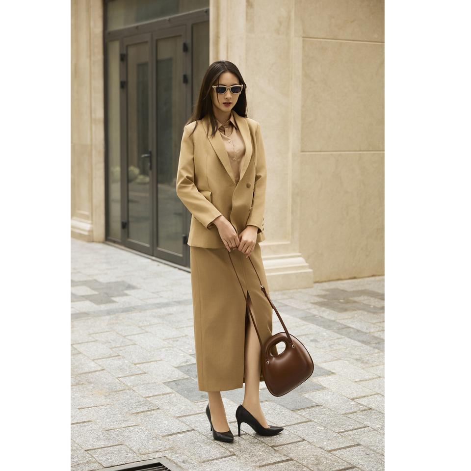 Vietnam Solid High Waist Elegant Front-Slit Midi Skirt KV27 Elegant / Office Lady / Vintage Minimal Maxi Standard Women's Skirts