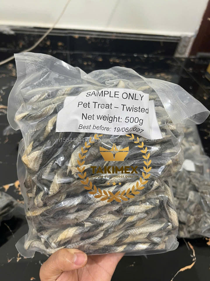 Vietnam Sourced Dried Pangasius Fish Skin Pet Treats by TAKIMEX for Daily Chewing