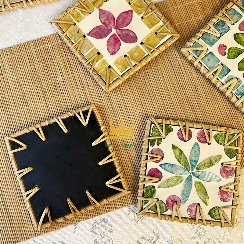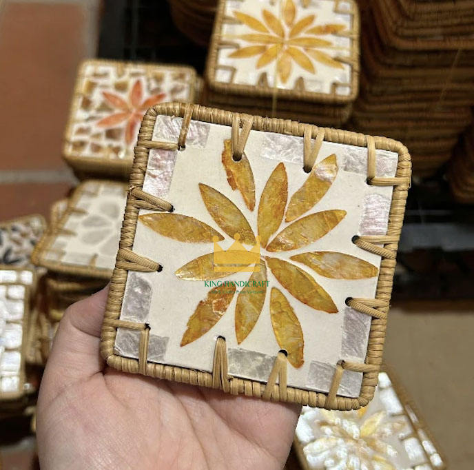 Vietnam Modern Eco-Friendly Square Rattan Dining Placemat with Artistic Mother of Pearl Sheet Mosaic Direct Factory Top Sale