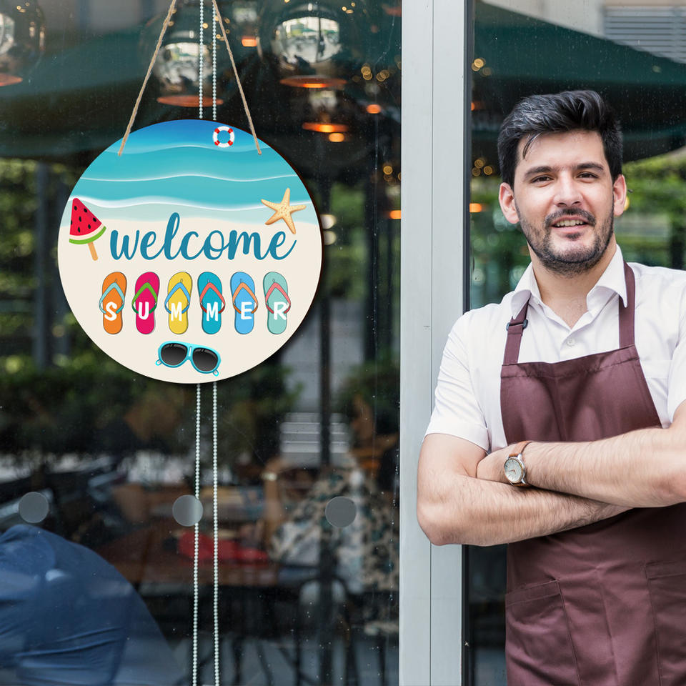 Vietnam Summer Door Hanger Wall Ornament Mediterranean Beach Hanging Sign Wooden Pendant for Hawaiian Party Home