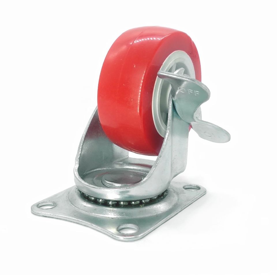 Vietnam Supplier 1.5 Inch Light Duty Zinc Plated Small Metal Side Brake Red Furniture Table Leg Mini Caster Wheels