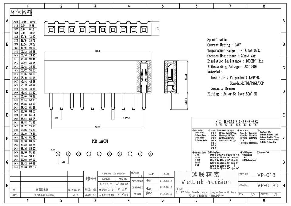 Vietnam Supplier 2.54MM Single Row Female Straight Plug O End Wave Plastic Height 8.5MM FFC FPC (Flat Flex) Connectors Connector