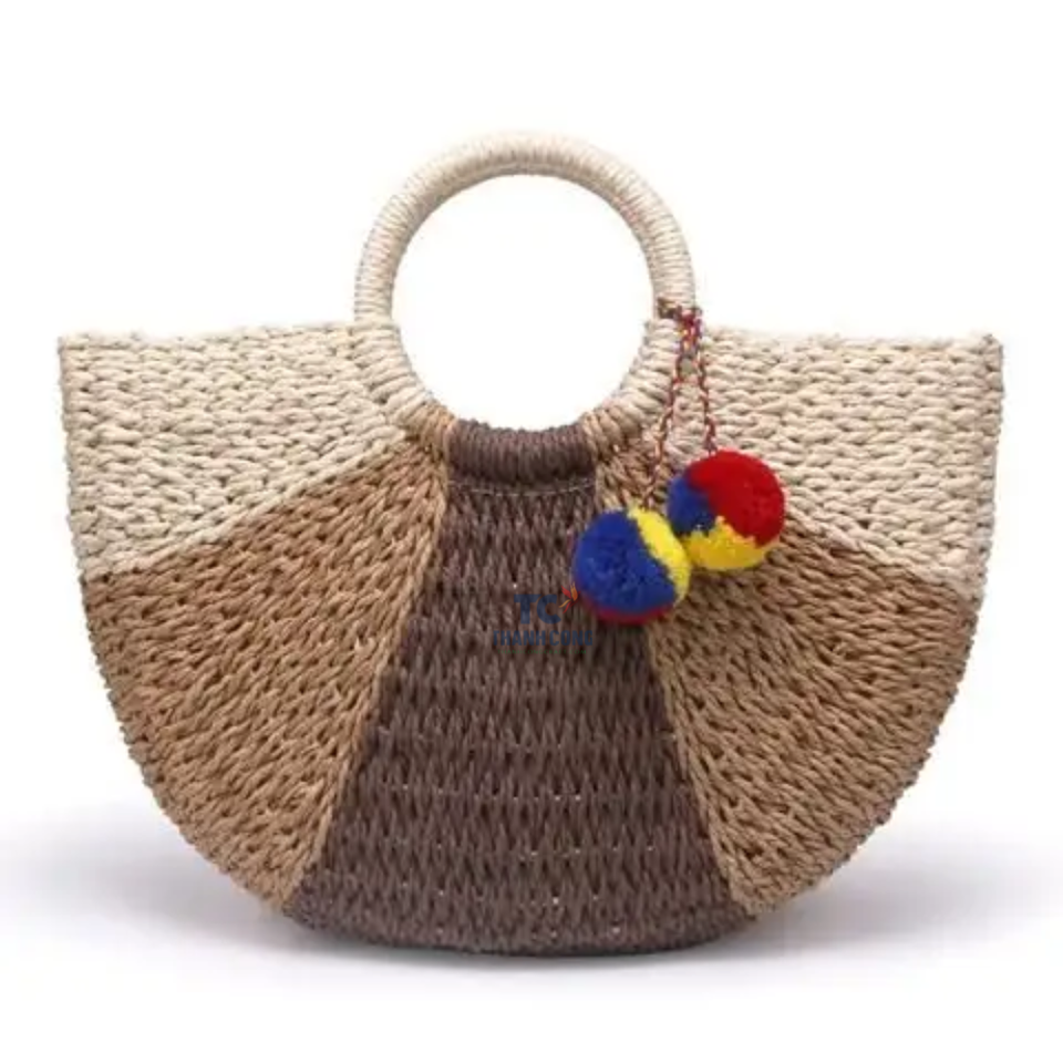 Vietnam Supplier Fashion Bohemian Rattan Water Hyacinth Seagrass Straw Tote Bag Handmade Ladies Women Hand Bags Wholesales