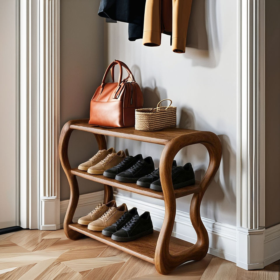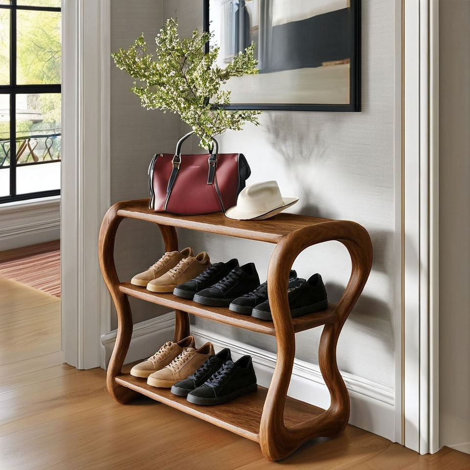 Vietnam Supplier - Unique Design Solid Wood Shoe Storage Narrow Shoe Rack for Entryway Corner Decor Wooden Shoe Cabinet