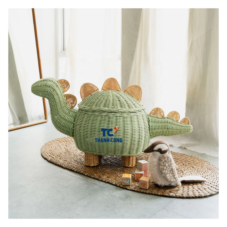 Vietnam Supplier of FOLDABLE CANVAS LAUNDRY BASKET KID TOY STORAGE Adorable Rattan Dinosaur Toy Organizer for Boys and Girls