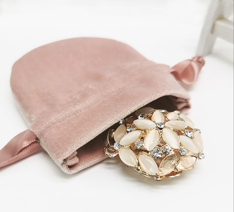 Vietnam Supplier's Small Silky Velvet Gift Bag Letter Pattern String Closure Sturdy Soft Embroidery for Jewelry Lipsticks