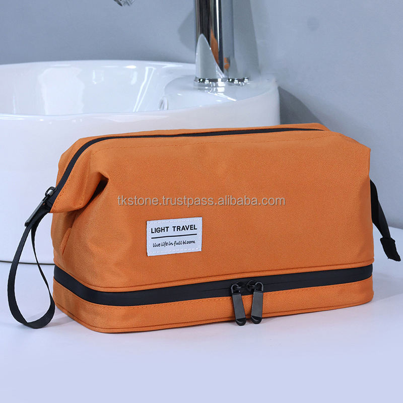Vietnam Trend Unisex Eco-Friendly Large Capacity Double-Layer Oxford Makeup Tote Bag Organizer Water Resistant Zipper Travel