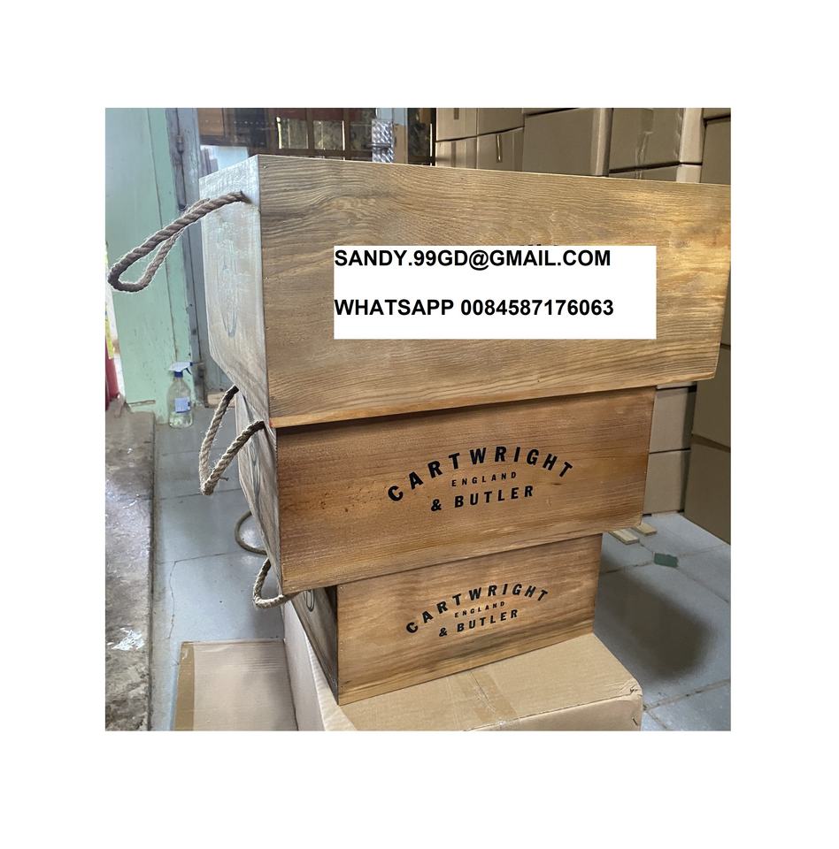 Vietnam Vintage Brown Wooden Crate-Rustic Business Craft Gift Box Set Polished Wood Crate for Wine Chocolate Storage Box Gift