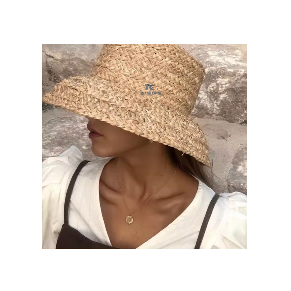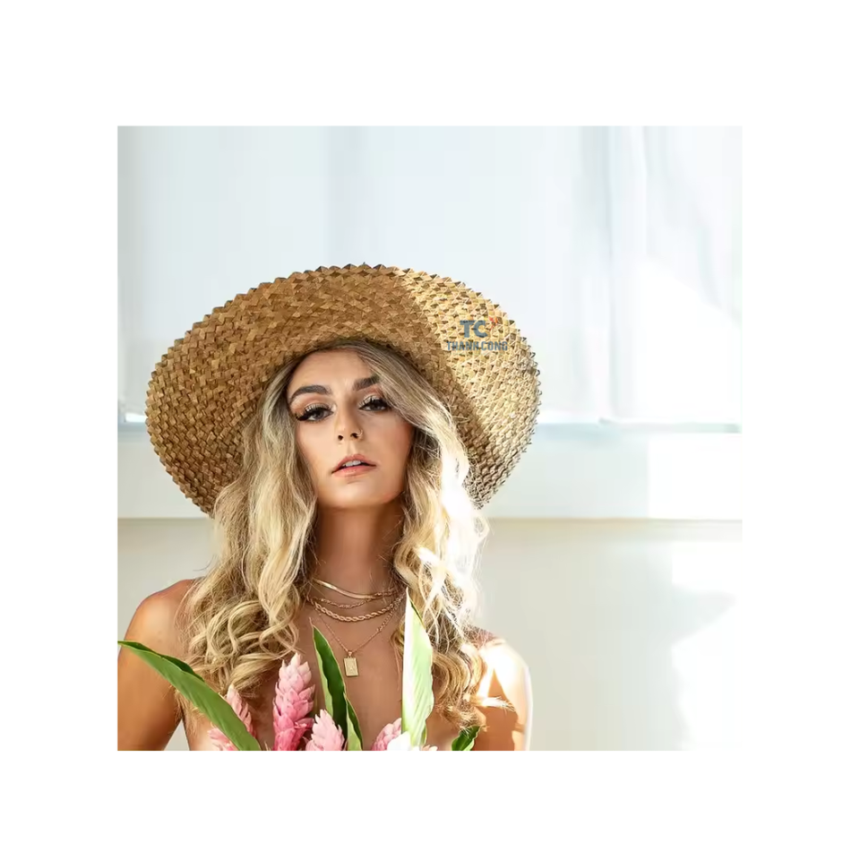Vietnam White Palm Leaf Wide-brim Hat / Natural Straw Farmer Hat/ Ribbon Seagrass Hat Home Party Event Gift Decor