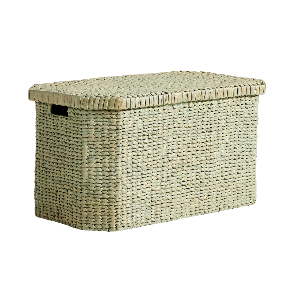 Vietnam Whole Water Hyacinth Toy Storage Basket with Lid Green Woven Kids Organizer Bin for Nursery Home Decor