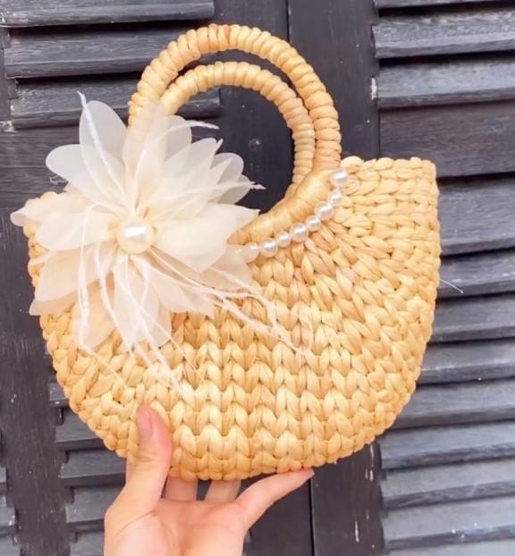 Vietnam Wholesale Low Price Beach Bag Water Hyacinth Handbag Straw Tote Bag Rattan Bag With Competitive Price