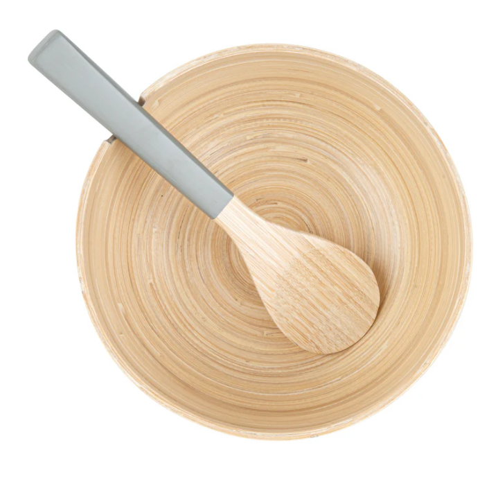 Vietnam Wholesalers LAVIHEXCO LVBB26-155 Eco-friendly Gray Spun Bamboo Serving Bowl Set Wooden Spoon Natural Tableware Custom
