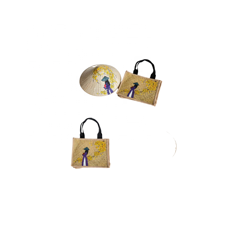 Vietnam Handmade Bamboo bags / Color Seagrass beach bags With Paint Logo/ Straw Summer Bag for Women Gift