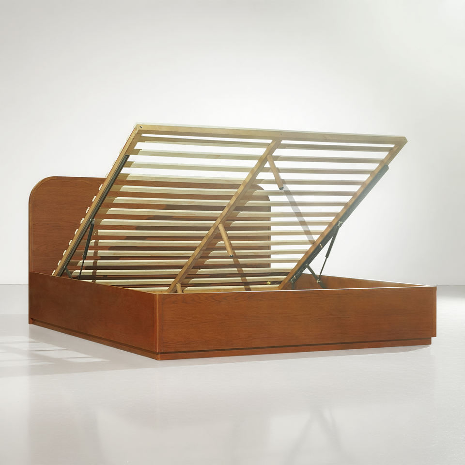 Vietnam-made Solid Acacia Wood Gas Lift Storage Bed Frame Hydraulic Lift-Up Wooden Bed for Minimalist Bedroom Furniture