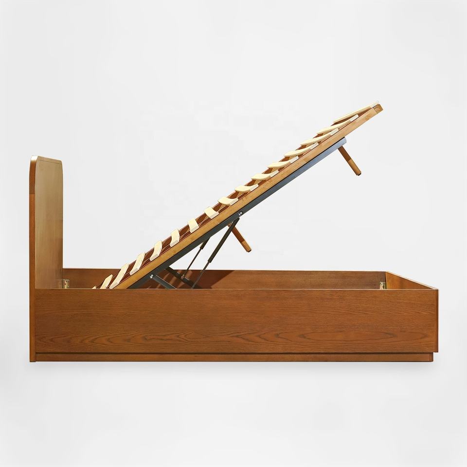 Vietnam-made Solid Acacia Wood Gas Lift Storage Bed Frame Hydraulic Lift-Up Wooden Platform Bed for Minimalist Bedroom Furniture