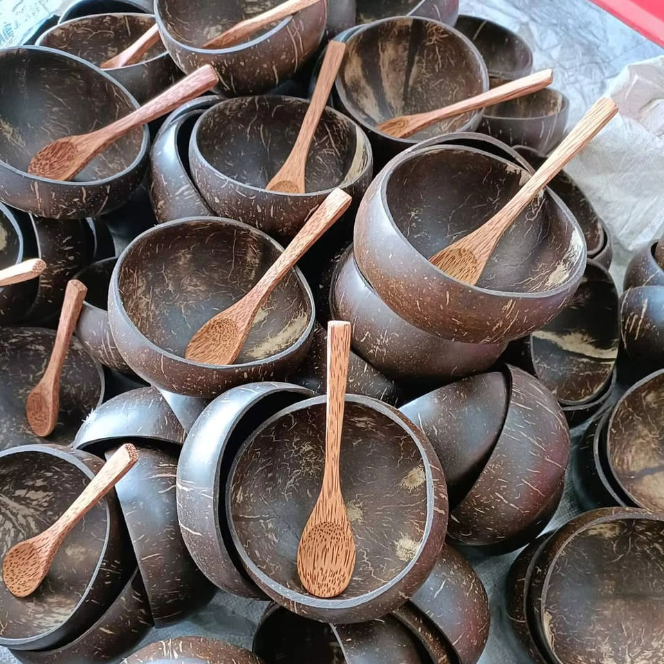 Polished Coconut Shell Salad Bowl 10cm + coconut spoon for Handicraft Container Food Souvenir Gift Craft Wedding Party New Year