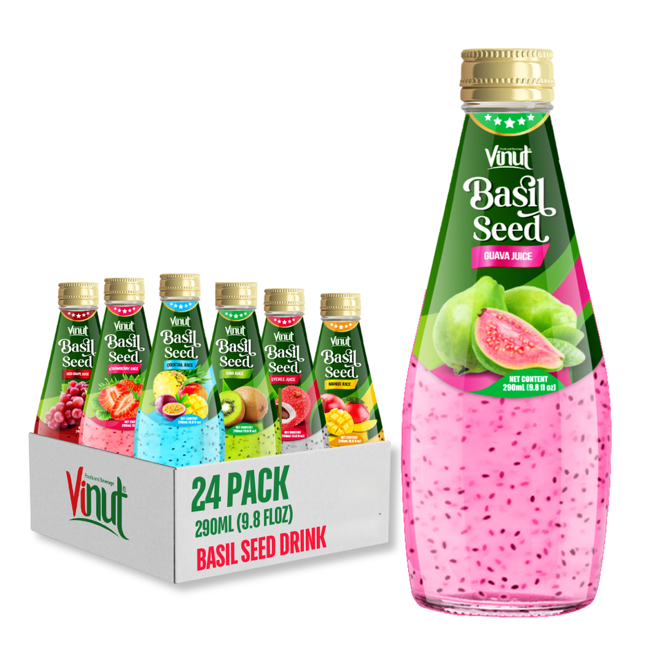 Vietnam's 290ml Guava Basil Seed Drink Private Label Sugar-Free Chia Seeds OEM/ODM & Free Sample Offered