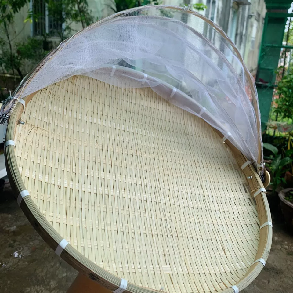 Vietnamese BAMBOO TRAY with Mesh Cover Traditional & Eco-Friendly Perfect for Drying, Serving & Storing Food
