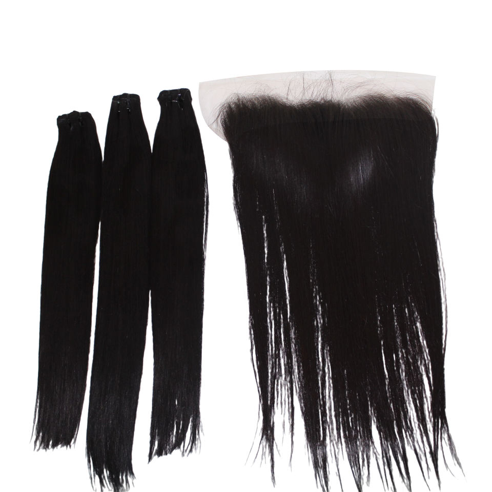 Feature:glueless, baby hair, with bangs, double drawn, bleach knots