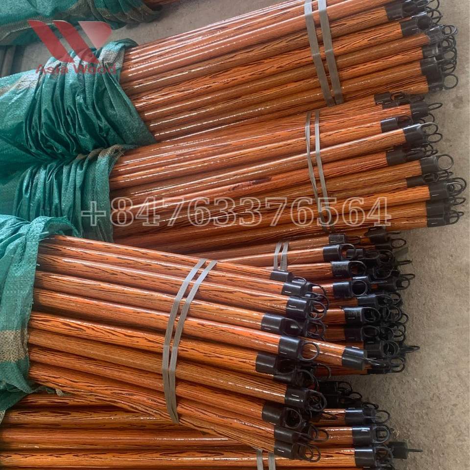 Vietnamese Eucalyptus Wood 2-in-1 Eco-Friendly Cleaning Stick PVC Coated Italia Thread Design Grain Wood Broom 120cm Flagged