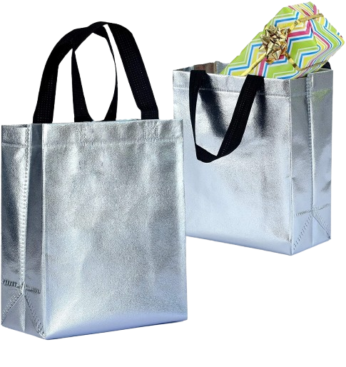 Vietnamese Factory Lamination Non Woven Wholesale Custom Logo Silver Gold Metallic Shopping Bags with Handle