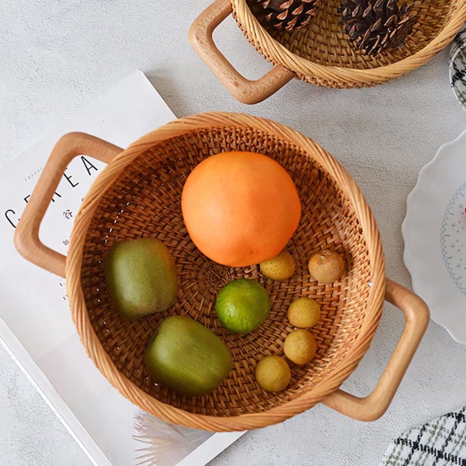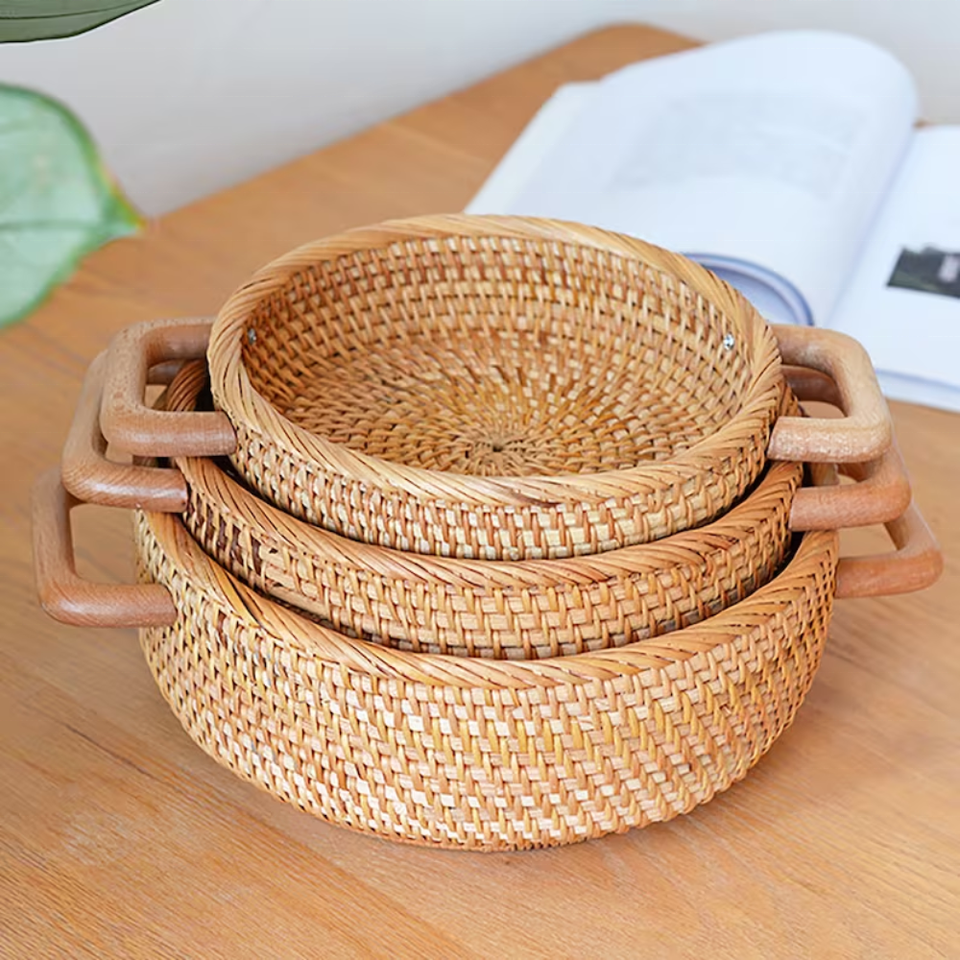 Vietnamese Factory Wholesales Natural Round Wicker Basket with Handle Set of Fruit Basket Handwicker