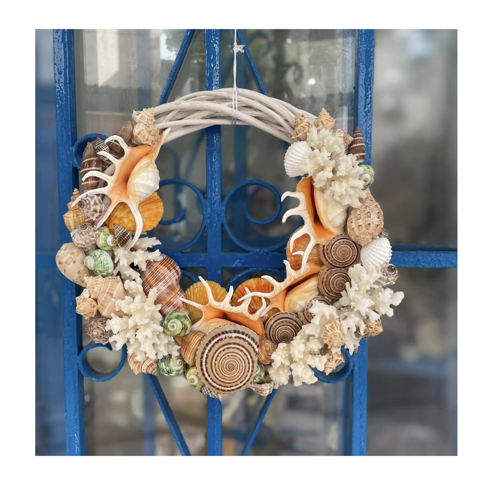 Vietnamese Handmade Gift White Scallop Seashell Wreath Beach House, Candle Ring, Coastal Decoration Party Wreath Wall Hanging