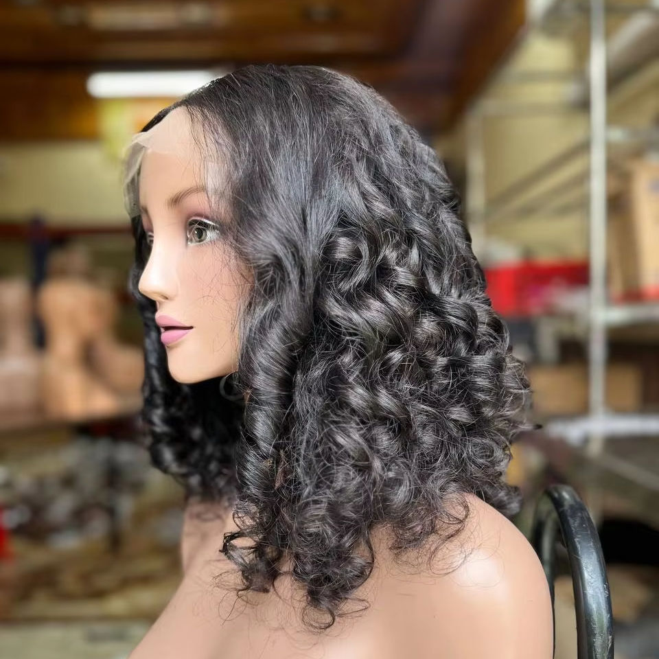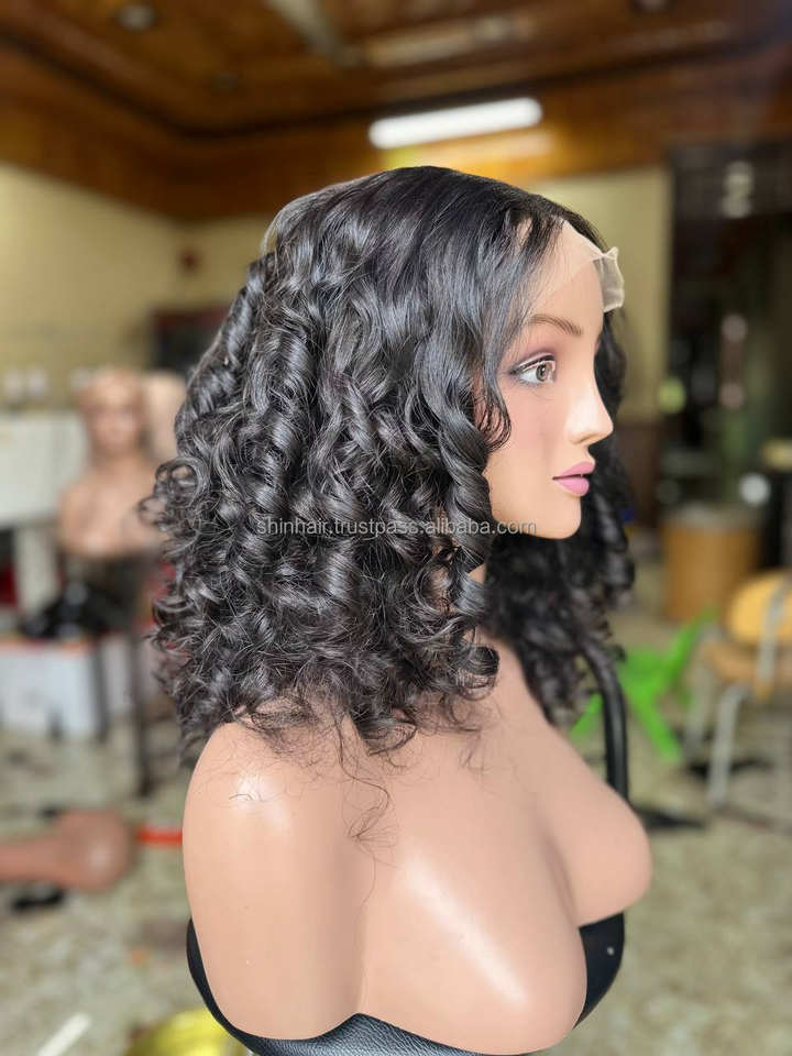 Vietnamese Raw Human Hair Products Natural Color Bouncy Curl Bundles and Wigs Large Cap Size