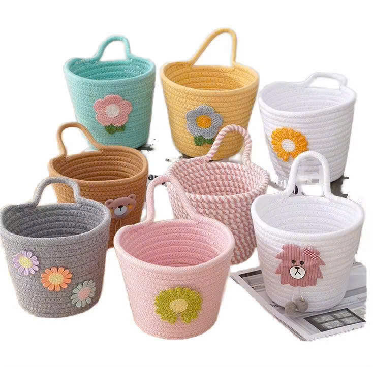 Vietnamese Wholesale Eco-Friendly Cotton Thread Wall-Mounted Hanging Basket Punch-Free Kitchen Sundries Storage Bag