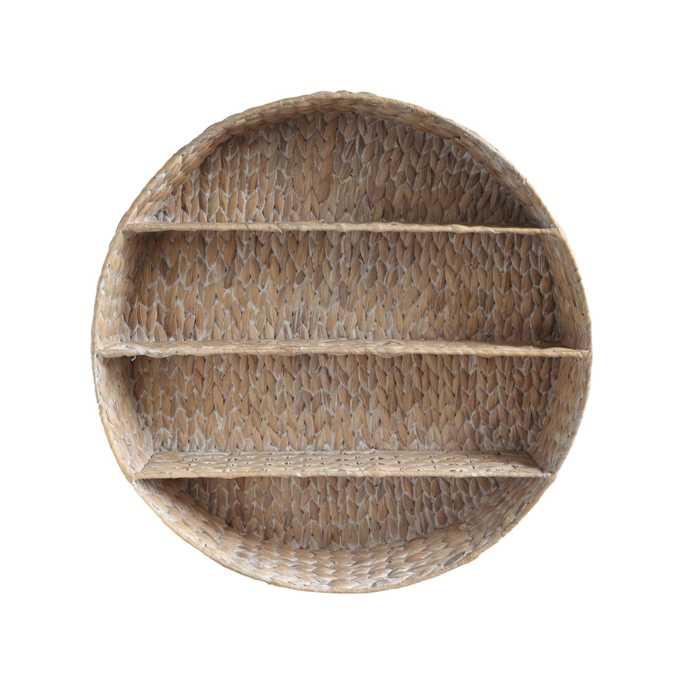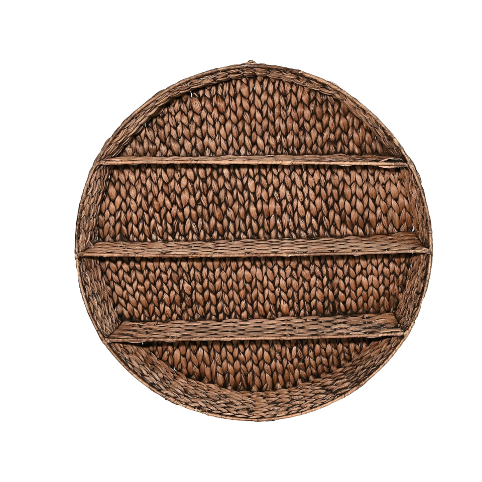 Water Hyacinth Round Boho Wall Shelf for Storage