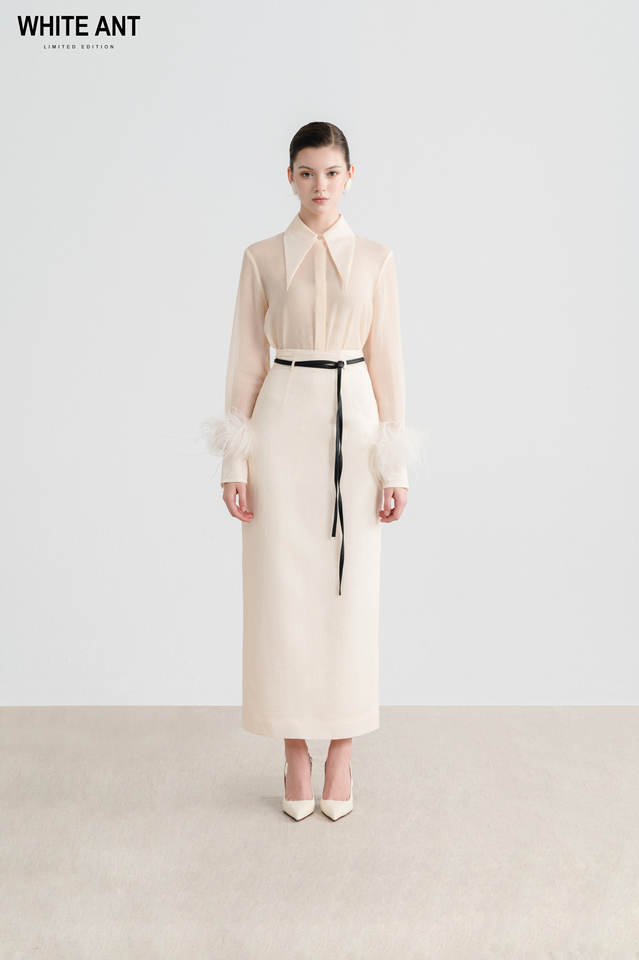Vietnamese Wholesale Womens Skirts With Belt Hira Long Skirt Split Back Ladies Clothes Custom Label & Tag Whiteant Factory