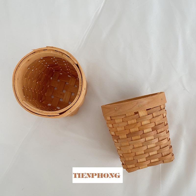 Vietnamese Wind Handmade Retro Woven Pen Holder Solid Wood Desktop Stationery Chopsticks Spoon Storage Tube Ornaments Props