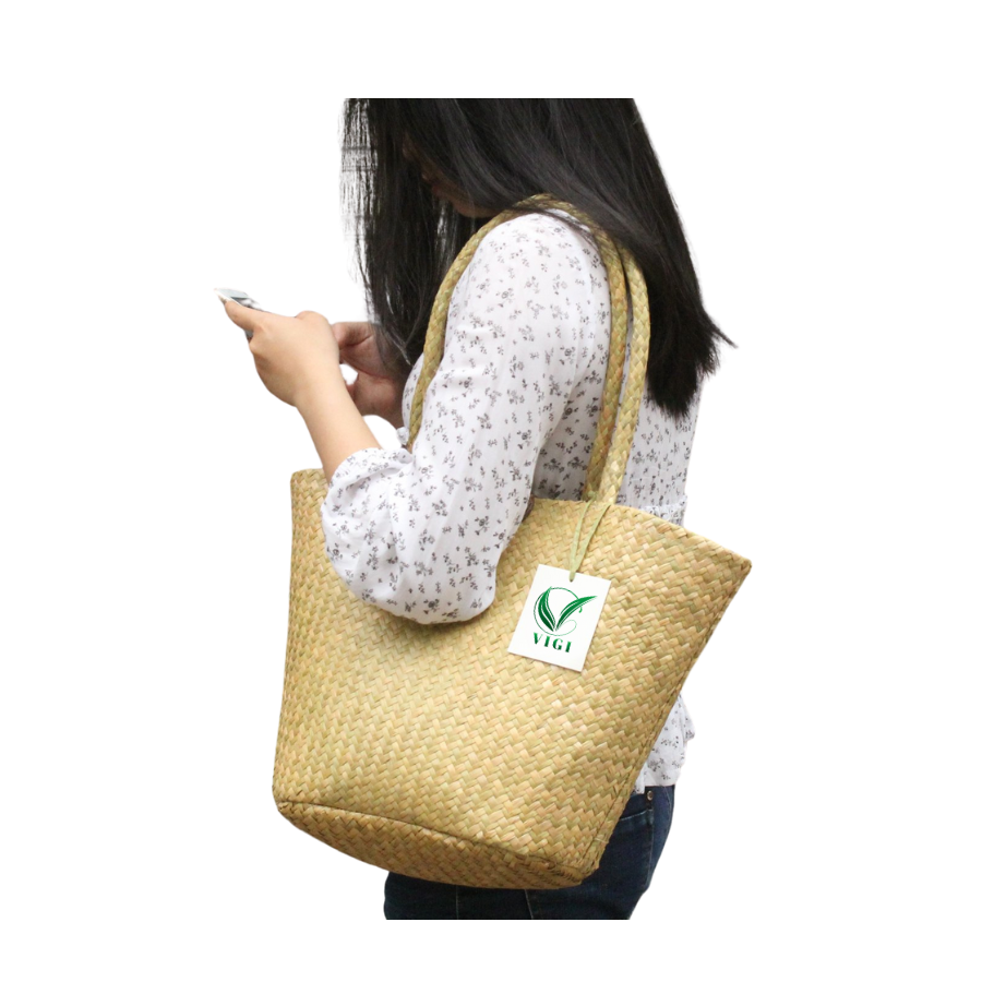 Vietnamese Woven Sedge Tote Bag Natural Handmade Bag For Eco Living, Zero Waste Stores, And Fashion Brands