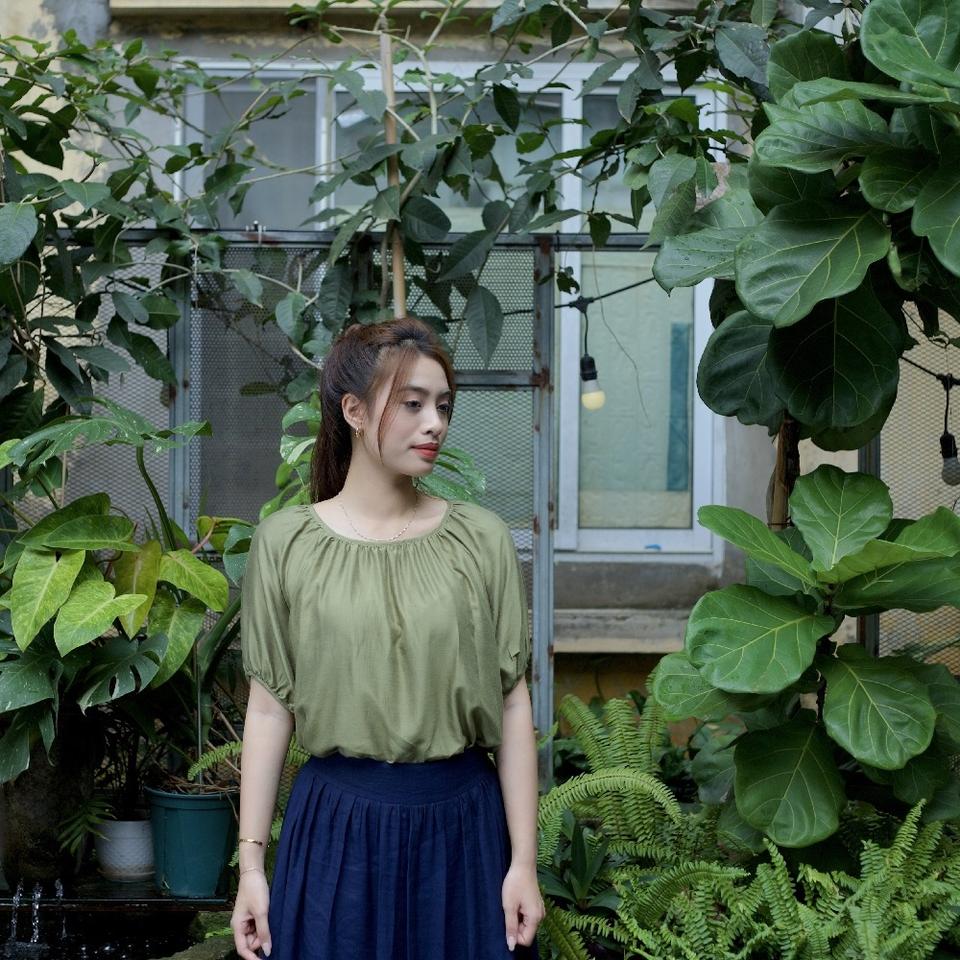 Vietnamese Formal Sophisticated Rayon Blouses for Women Short Sleeve Plaid Woven Pattern Loose Fit Eco-Friendly Breathable