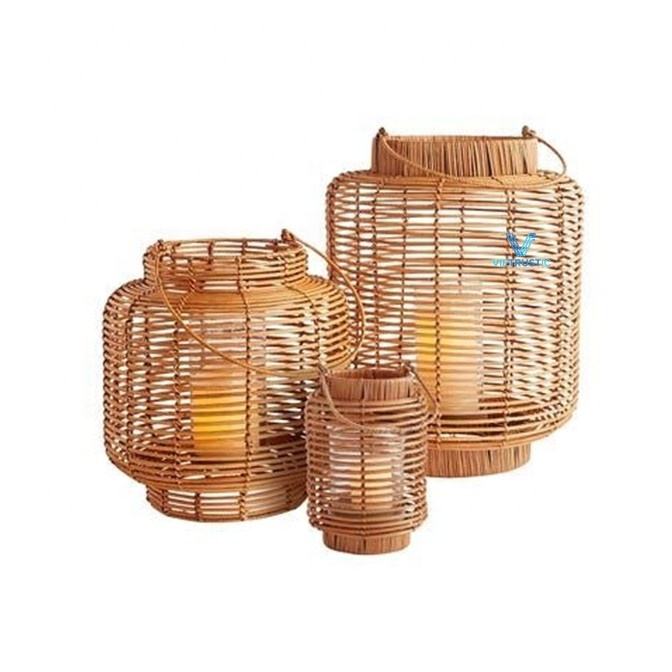 Vietrustic Eco-Friendly Handmade Rattan Woven Bamboo Lantern Set of 3 Handmade Wicker Candle Holder Made in Vietnam