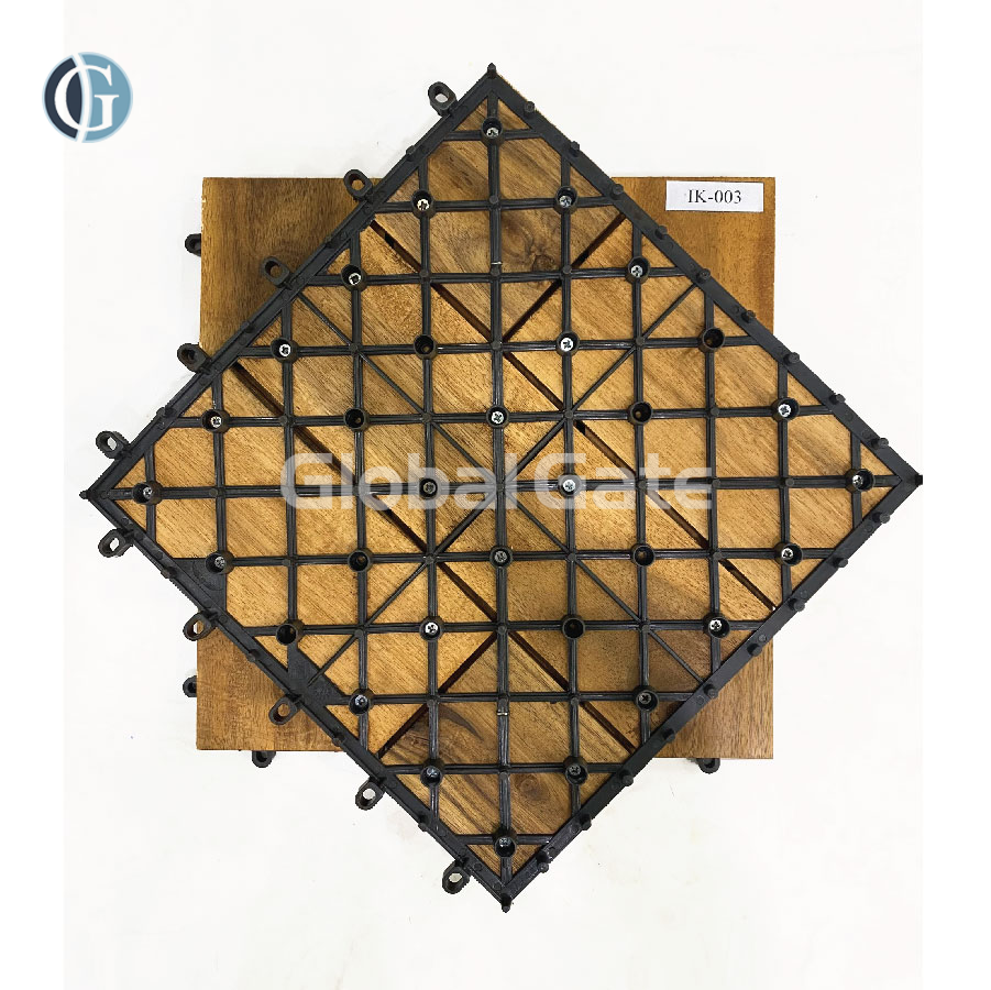 Vietwood Outdoor Floor Tiles Modern Design Cheap Acacia Wood Deck Tiles 6 Slats for Terrace Parquet Flooring for Garden Walkway