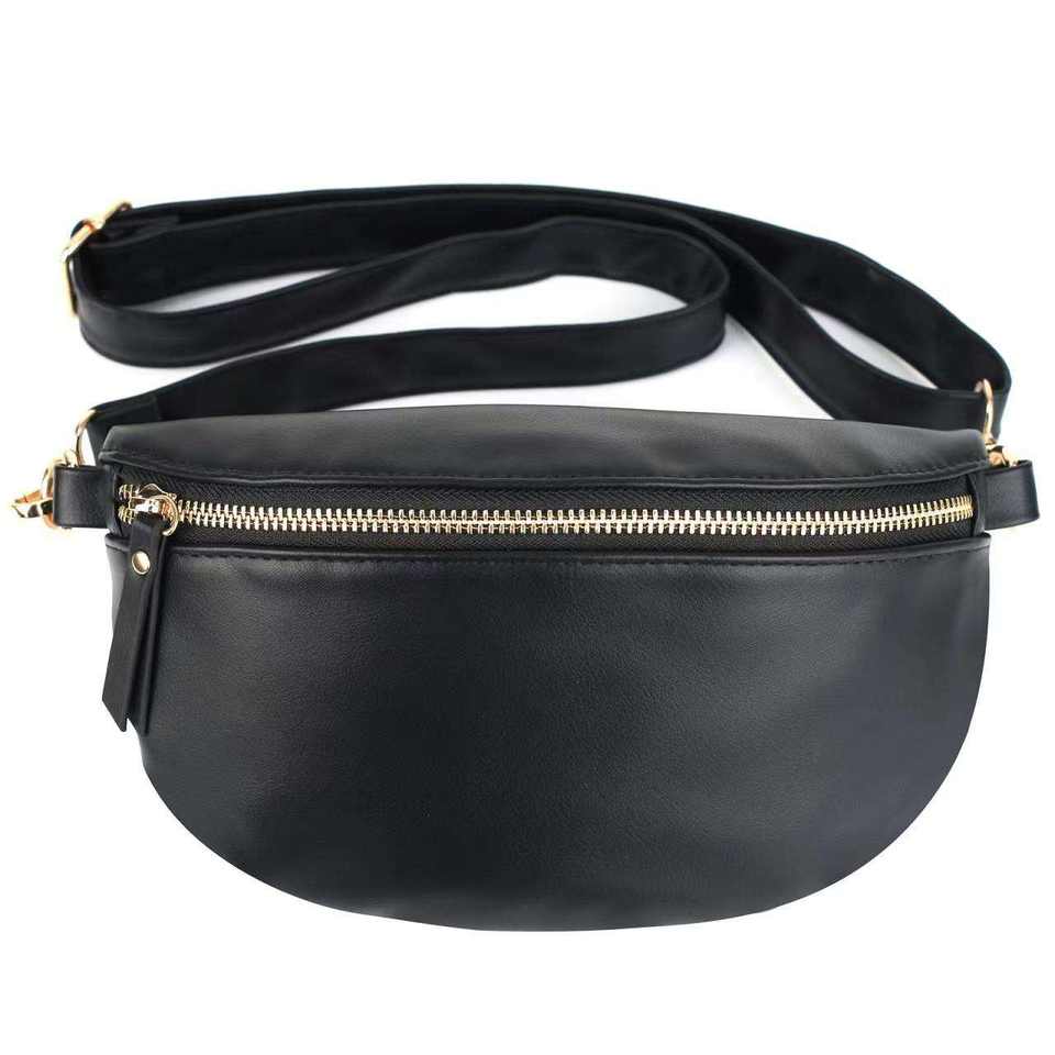 Hot Sale Solid PU Leather Belly Bags for Men and Women Outdoor Sports Fanny Pack with Zipper Closure Crossb Design