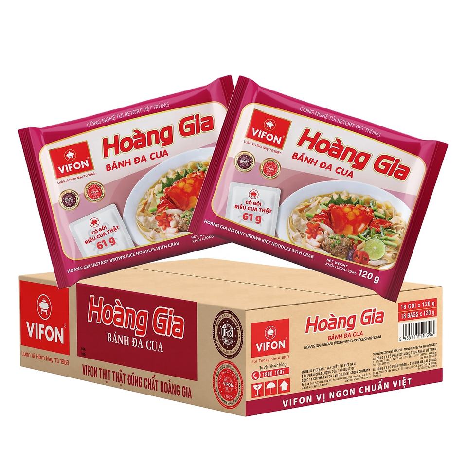 Vifon High Quality Hoang Gia Instant bean thread with crab 120gr x18 - From Vietnam Fair Trade WS: +84988937400