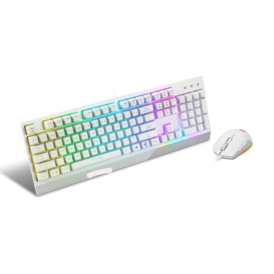 Vigor GK30 Combo White, 6-Zone RGB GK30 Gaming Keyboard & GM11 Gaming Mouse, Water Repellent & Splash-Proof, 5000 DPI